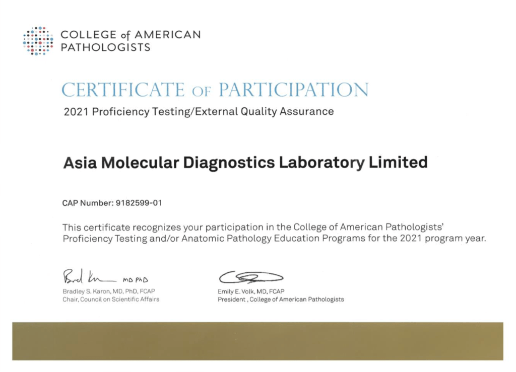In Mar 2022, AMDL received certificate of CAP EQAP 2021 March, 2022 Home > Resources > Press Release > In Mar 2022, AMDL received certificate of CAP EQAP 2021 Good news! AMDL Molecular Laboratory passed CAP-PT(NGSST) with full marks. Related