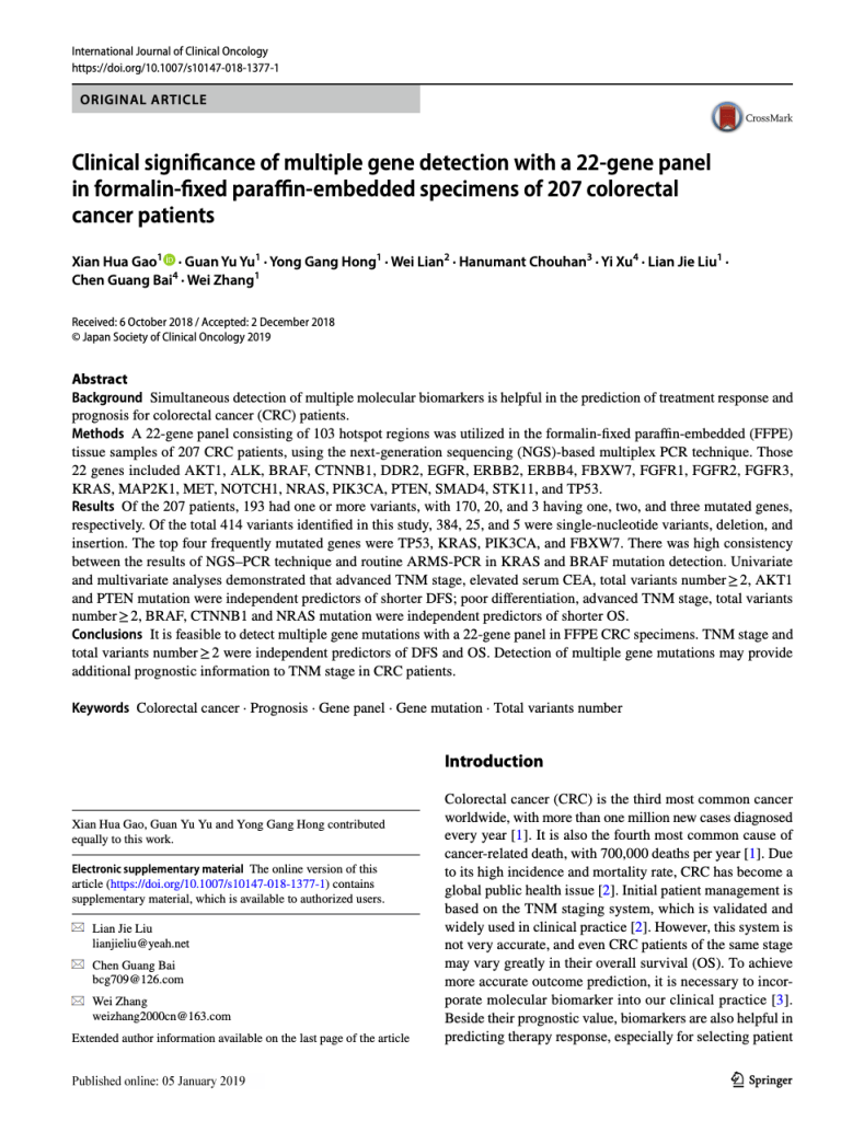 Clinical significance of multiple gene detection with a 22-gene panel in formalin-fixed paraffin-embedded specimens of 207 colorectal cancer patients