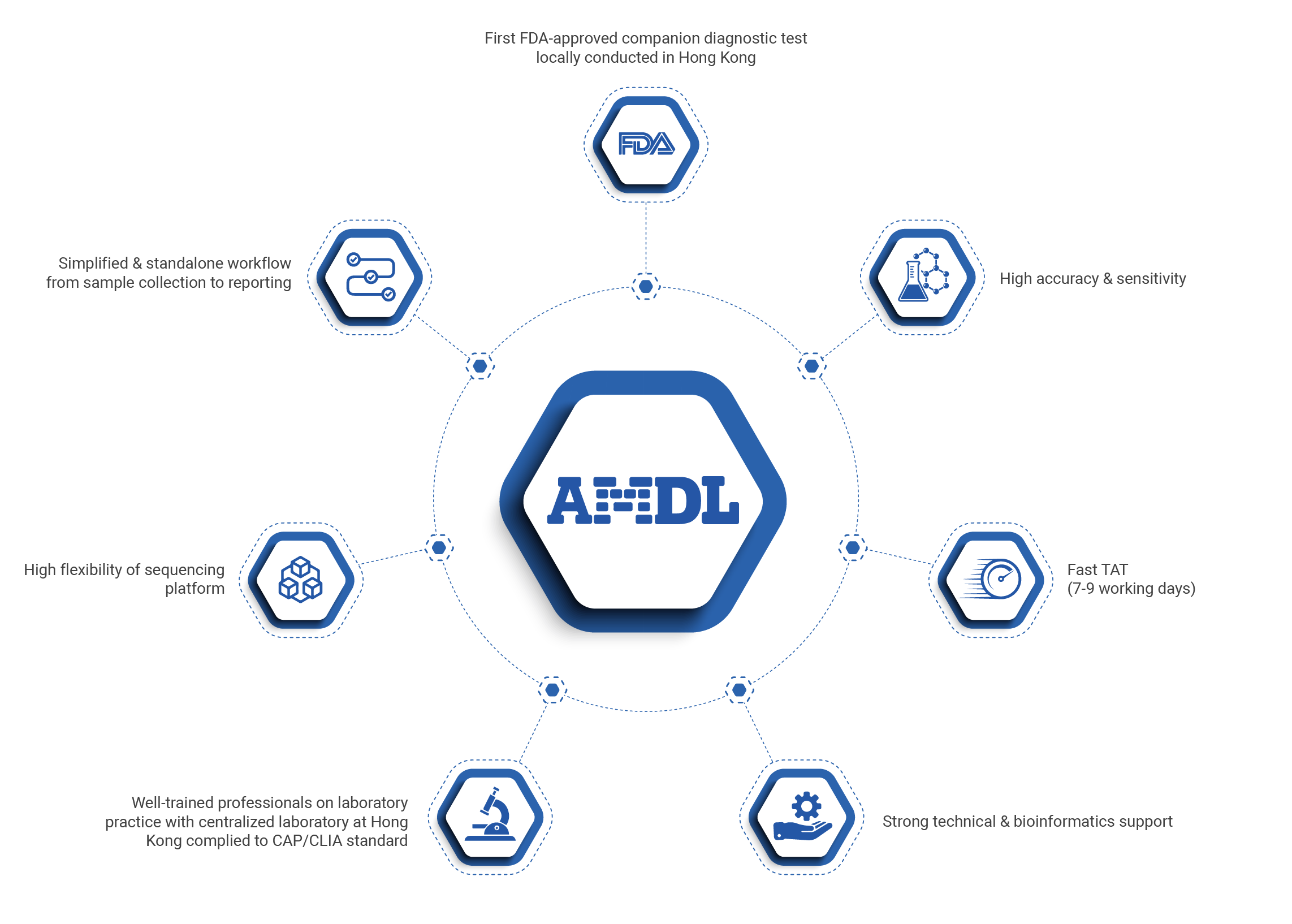 With the state-of-the-art technologies, we can provide affordable genetic test services to the general publics. Our continuous R&D activities help to establish and implement cutting-edge genetic test services into our system. Most importantly, our well-trained professionals are all complied to CAP/CLIA standard to provide technical and bioinformatics support.